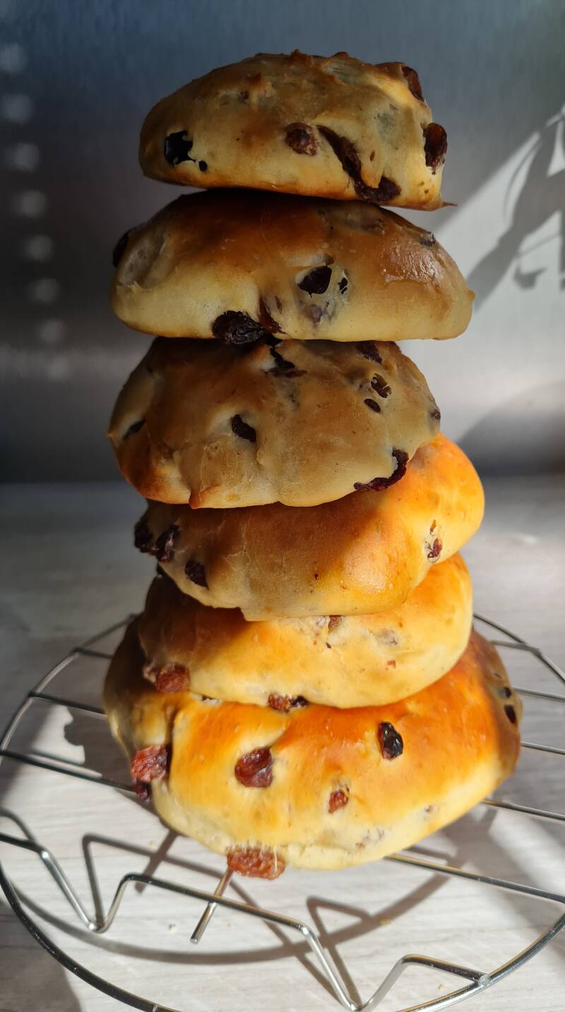 ♡ eenmaal uit de oven smeer je ze een beetje in met plantaardige boter voor de glans op de krentenbol. Doe dit als de krentenbollen nog warm zijn.